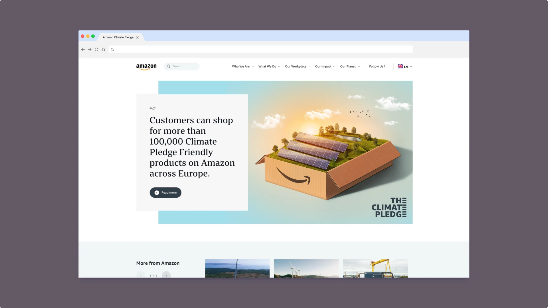 Amazon and Global Optimism co-founded The Climate Pledge to achieve net-zero carbon emissions by 2040. Since then, a growing number of major companies have joined the initiative, playing a crucial role in driving investment toward developing low-carbon products and services.